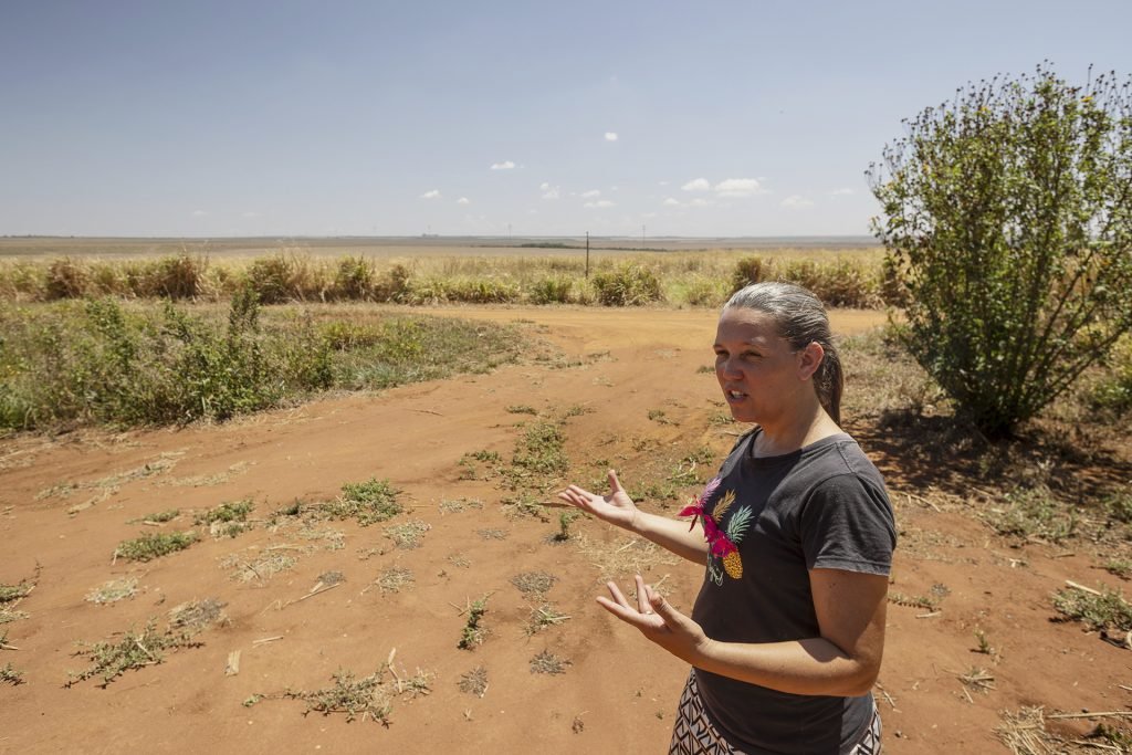 A cerca de 1,5 mil quilômetros do lobby em Brasília, a Terra Indígena Tirecatinga vive os efeitos dos agrotóxicos utilizados principalmente na produção do algodão. Ao longo da rodovia estadual que dá acesso ao território, a paisagem é dominada por extensas áreas de plantio do arbusto.
