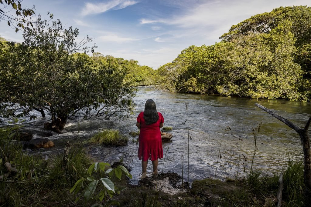 A aldeia Serra Azul fica a poucos metros do Rio Buriti, no coração da Terra Indígena Tirecatinga, em Sapezal, a cerca de 510 quilômetros de Cuiabá, em Mato Grosso. É um rio calmo e fundo, com margens protegidas por uma densa vegetação e árvores imponentes como as palmeiras que lhe dão o nome. Em alguns pontos, a água cristalina permite ver cardumes de peixes e pedras ao fundo. Há sete meses, porém, os Indígenas se recusam a utilizar essa água para qualquer tarefa cotidiana na aldeia. Não a bebem, não lavam roupas, não se banham. Desde setembro passado a aldeia é atendida por um caminhão-pipa com 5 mil litros para abastecer a caixa-d’água que serve à comunidade. O rio que banha sua aldeia se tornou perigoso.