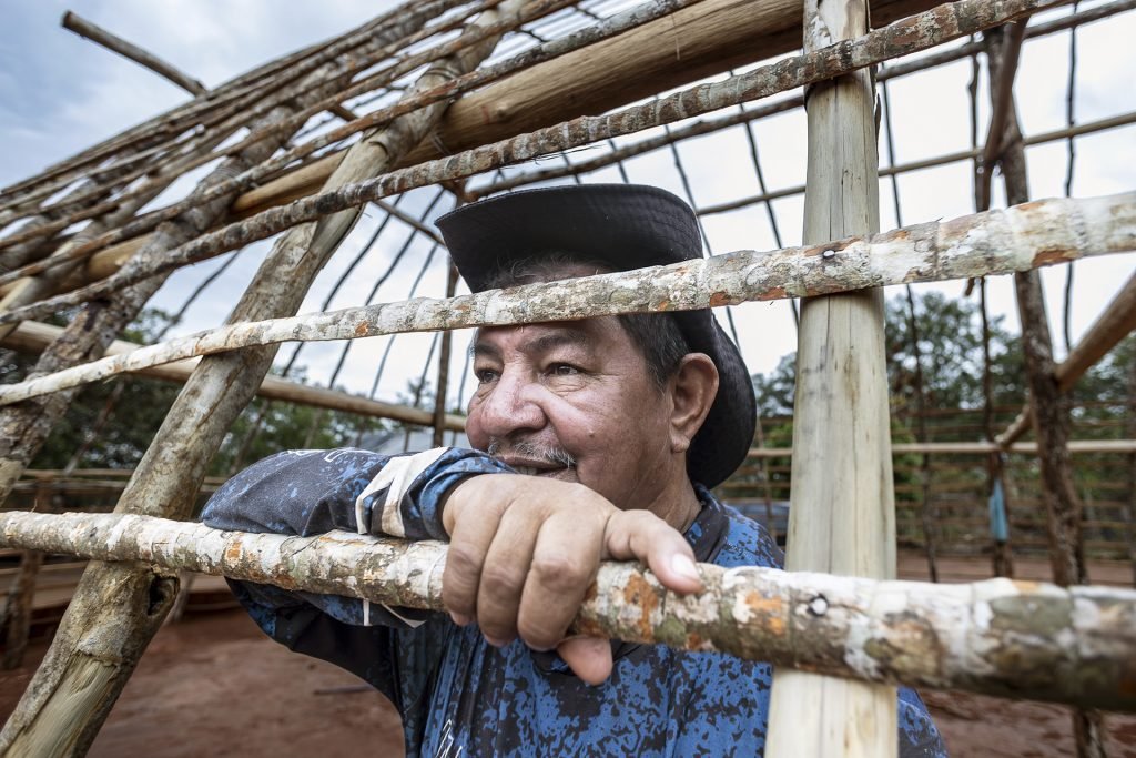 Geraldo conta que a situação começou a piorar há sete ou oito anos, quando se intensificou o plantio do algodão na região. “O algodão está acabando com a nossa pesca, a nossa caça. Hoje nós não estamos tendo caça como era pra ter, como era antigamente.” As abelhas também estão deixando de existir. “A abelha precisa de 3 quilômetros de distância para buscar o néctar. E eu não tenho mais abelha. Eu não tenho jataí, não tenho mandaguari, não tenho abará. Não tenho uma abelha que nós chamamos arapuã. […] Tá acabando, tá sumindo tudo. Por causa do quê? Por causa do veneno. E a gente vê falar que perto da Terra Indígena, 3, 2 quilômetros, não pode usar agrotóxico. Mas o que mais eles usam é isso. Então como vamos fazer?”